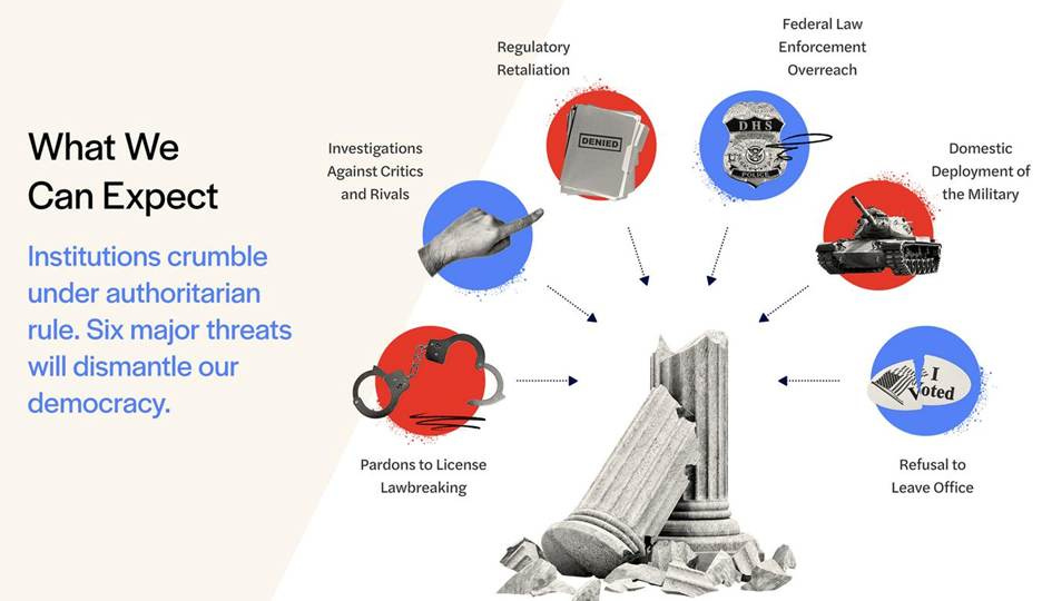 This graphic, from The Authoritarian Playbook for 2025, is a good summary of the steps in dismantling a democracy. Almost every behavior on the part of the current Republican administration falls within this framework. Once you see them for who they are, their behaviors are less shocking. Infuriating and heartbreaking, yes, shocking, no.